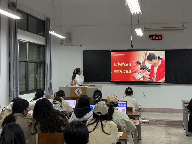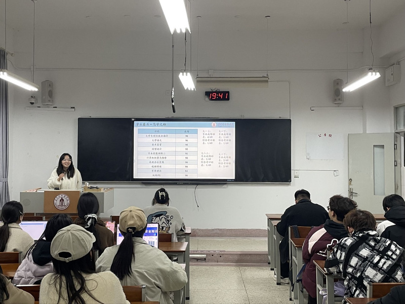近日,数学与信息工程学院精心策划并成功举办了“国家奖学金获得者进班级”系列宣讲活动。本次活动由学院“乐学·答疑坊”具体组织实施,特邀“乐学·答疑坊”2025年国家奖学金获得者郭小雅、郭美芝两位优秀同学担任主讲,面向全院8个大一新生班级开展巡回宣讲,直接受益学生达300余人。