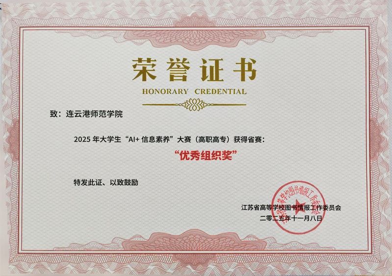 近日,由江苏省高等学校图书情报工作委员会主办的2025年大学生“AI+信息素养”大赛(高职高专组)圆满落幕。我校凭借出色的赛事组织工作和扎实的信息素养教育成果,荣获“优秀组织奖”,这是对我校在推动人工智能与信息素养融合育人方面工作的充分肯定。