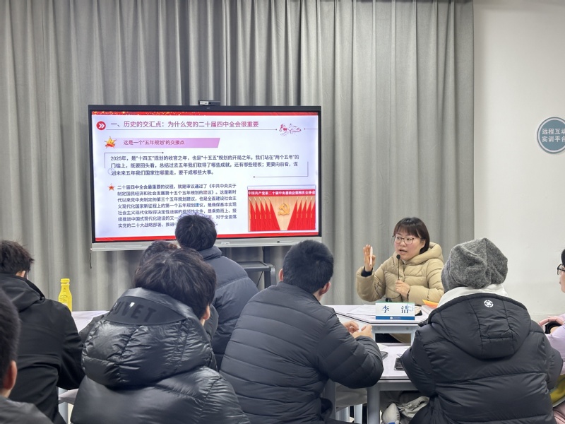 党课结合历史视野与理论逻辑,系统阐释了全会的时代意义与核心内涵,引导学生从历史方位理解全会的战略意义,进而围绕国家未来发展布局,解读“十五五”时期的指导思想与战略部署,帮助同学们构建起对国家蓝图的整体认知。党课紧密结合学院学科特色与学生成长实际,强调新时代学生党员应主动将个人理想融入国家发展,在思想政治洗礼中坚定信念、锤炼本领,真正成为新征程上的信仰者、践行者与贡献者。