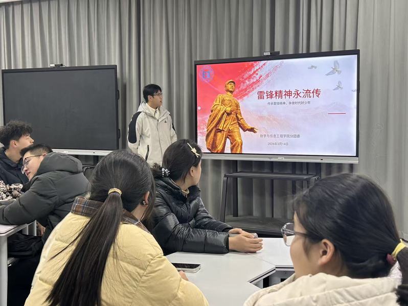 3月12日,数学与信息工程学院分团委在吉余楼A429开展了“弘扬雷锋精神,争做时代新人”主题团日活动。活动通过故事讲述、内涵研讨与实践感悟分享,激励学子在志愿奉献中擦亮青春底色。